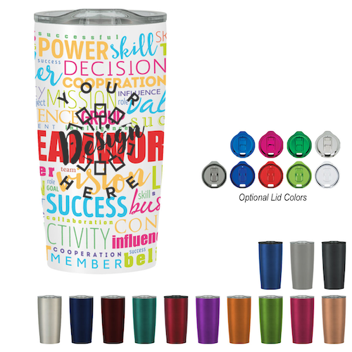 This is an 18 oz. stainless steel tumbler with double-wall vacuum insulation to keep drinks hot or cold for up to 6 hours. It features a snap-on, spill-resistant thumb-slide lid, a non-slip bottom, and is BPA-free and meets FDA requirements. It is available in various colors and lid options, and can be imprinted with a 4-Color Process Wrap. The approximate size is 7" H with an imprint area of 11" W x 6" H.