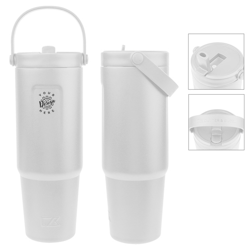 The 32 oz. Cutter & Buck Recycled Stainless Steel Tumbler delivers sustainable performance and premium style, making it an excellent choice for custom corporate gifts, employee appreciation, and branded merchandise. Crafted with triple insulated recycled stainless steel inside and out, this vacuum insulated tumbler features double wall construction to keep beverages hot or cold for extended periods. It includes a recycled PP screw-on, spill-resistant sip top lid with a recycled PE straw, a durable powder coated finish, and a non-slip base for added stability. The easy carry handle showcases the signature Cutter & Buck molded logo on the handle and bottom of the tumbler for a refined touch. BPA free and FDA compliant, this 32 oz. tumbler is ideal for custom logo decoration and everyday hydration. Hand wash recommended.