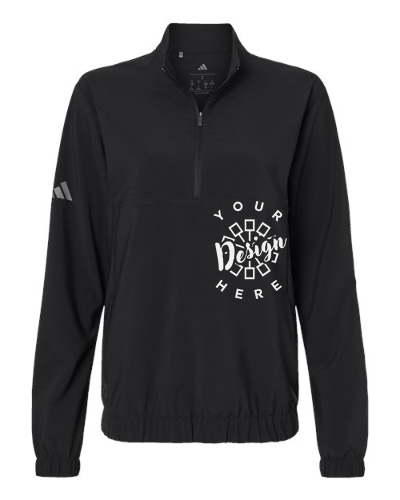 The Adidas Women's Stretch Woven Half-Zip Pullover combines lightweight performance and modern style, making it ideal for custom corporate apparel, team uniforms, and branded activewear. Made from 5.5 oz./yd², 87/13 recycled polyester and elastane, this regular fit pullover offers flexible stretch and breathable comfort for all-day wear. Designed with a half-zip front for easy layering, front pockets for added functionality, and elasticized cuffs and waistband for a secure fit, it delivers both versatility and performance. Finished with a contrast heat-transfer logo on the right sleeve, this pullover is perfect for custom embroidery or logo decoration for events, staff apparel, and athletic programs.