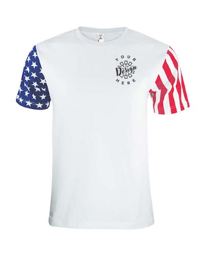 Show your patriotic pride with the Adult Stars and Stripes Tee, featuring a classic white body and unique star and stripe prints on the sleeves. Made from soft 5.5 oz. 100% cotton jersey, this tee offers comfort and style for holidays like Independence Day, Memorial Day, or anytime you want to celebrate America. With durable construction, ribbed collar, and easy-care instructions, this shirt is designed for a true-to-size, unisex fit that’s perfect for any occasion. Machine washable and tumble dry low for convenience.