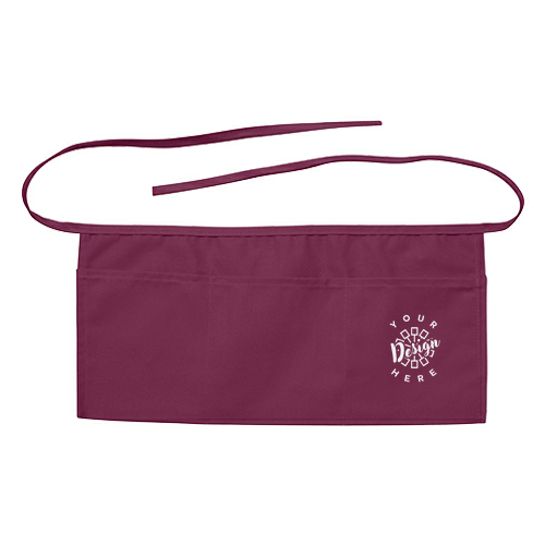 This handy apron is crafted from a blend of 65% polyester and 35% cotton twill (Natural variant is made of 100% cotton twill). It features half-inch wide waist ties and a pouch divided into three pockets, providing ample storage space. The apron measures 20" x 10".