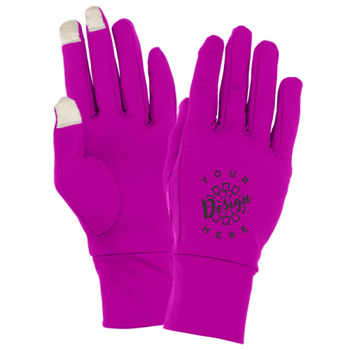 Enhance your cold weather gear with these innovative gloves. Crafted from 6.5 Oz. Brushed Back 90/10 Polyester/Spandex Knit with Metallic Dobby Tech Tips, they offer both style and functionality. The soft brushed back Poly/Spandex knit provides 4-way stretch for optimal comfort. These gloves feature conductive middle, pointer, and thumb fingertips for convenient touch screen capability. An interior hand warmer pouch at the back of the hand keeps hand warmers secure and hands warm. The snug, double-layer cuff ensures to keep out the cold, while finger gussets provide a snug fit for increased articulation.