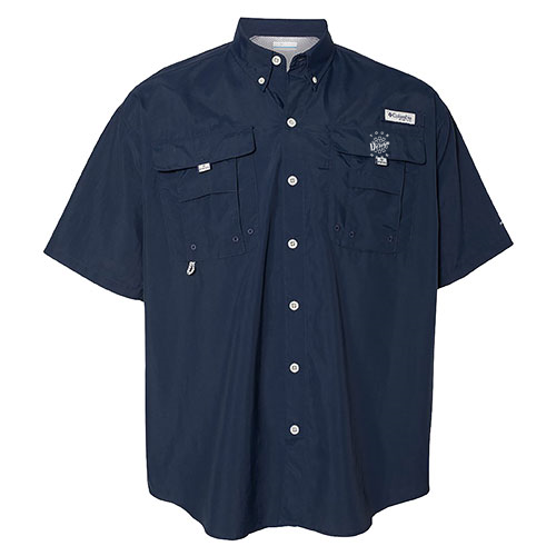 Stay comfortable and protected from the sun in the Columbia PFG Bahama II Short Sleeve Shirt. Crafted from 3 oz. 100% Tactel nylon taffeta, this shirt offers quick-dry properties, making it ideal for outdoor activities. It features hidden ventilation at the shoulders for added breathability and Omni-Shade UPF 50 protection to shield you from the sun's harmful rays. The shirt also includes chest pockets with Velcro closure for convenient storage and a hook-and-loop rod holder with the Columbia patch logo on the left chest.