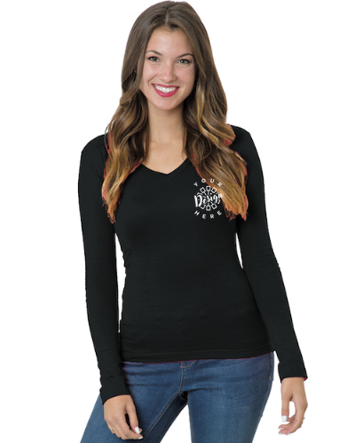 Bayside Ladies' USA Made Long-Sleeve Deep V-Neck T-Shirt