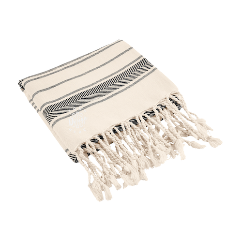 The Bungalow Beach Towel is a stylish and versatile choice for beach days, boating trips, or any outdoor water activity. Made from 100% cotton with a lightweight 200 GSM single yarn count, this woven towel offers softness, absorbency, and durability. Finished with decorative tassels for a touch of elegance, it doubles as a beach blanket or wrap. Perfect for custom embroidery or printing, the Bungalow Beach Towel makes an excellent promotional gift or branded accessory for summer events and coastal adventures.
