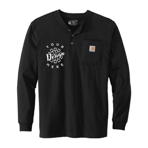 The Carhartt Long Sleeve Henley T-Shirt combines classic style with rugged durability, making it perfect for custom workwear or casual branding. Crafted from heavyweight cotton jersey knit, this Henley features a rib knit crewneck, three-button placket, and rib knit cuffs for comfort and flexibility. The side-seam construction helps prevent twisting, while the left chest pocket with a sewn Carhartt label adds a functional touch. Designed with a loose fit for easy movement, this long sleeve Henley delivers lasting comfort and a professional look for any job or team.