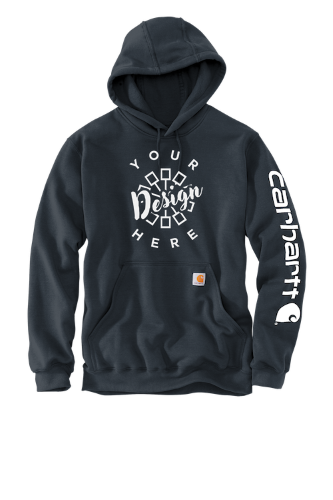 The Carhartt Midweight Hooded Logo Sweatshirt delivers dependable warmth and durability for work or casual wear. Made from a premium cotton/poly blend, this hoodie features an attached three-piece hood with drawcord closure, a front hand warmer pocket, and stretchable spandex-reinforced cuffs and waistband for a secure fit. The Carhartt signature logo runs down the left sleeve, and the triple-stitched main seams ensure long-lasting wear. Finished with a Carhartt patch on the pocket, this loose-fit hoodie is ideal for custom embroidery or branded workwear.
