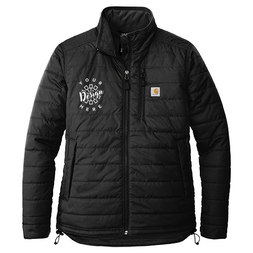 Keep working through cold, wet weather in this women's version of our popular Gilliam Jacket. Constructed with a 1.75-ounce, 100% Nylon Cordura shell, it features Rain Defender® durable water repellent technology to keep you dry. Wind Fighter® technology tames wind, while the nylon lining is quilted to 100-gram polyester insulation for added warmth. The jacket is equipped with a reverse coil center front zipper, zip-through collar, left chest map pocket with reverse coil zipper, and two hand pockets with hidden snap closures. It also includes two interior pockets: one zippered and one with hook and loop closure. The hook and loop adjustable cuffs, drawcord adjustable drop tail hem, and Carhartt-strong triple-stitched main seams ensure durability and functionality. The Carhartt label is sewn on the chest pocket for authenticity.