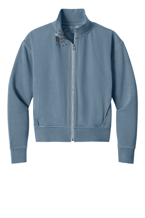 The Comfort Colors Women’s Full-Zip Jacket offers a perfect blend of casual comfort and everyday versatility, making it ideal for custom apparel and branded merchandise. Crafted from a 9.5-ounce ring spun cotton and polyester fleece with a soft cotton face, this garment-dyed jacket delivers a lived-in feel and excellent printability. Designed with a relaxed fit, stand-up collar, full zipper, and ribbed cuffs and waistband, it features thoughtful details like a back neck patch and twill zipper pull for easy customization and long-lasting wear.