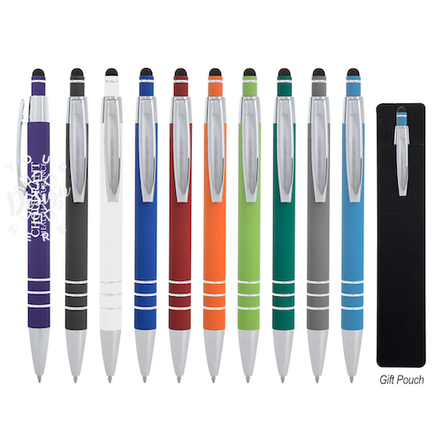 The Dublin Stylus Pen is a sleek and practical writing tool designed to enhance both comfort and functionality. Featuring a smooth plunger action, this pen provides an effortless writing experience. Its rubberized aluminum construction offers a premium feel while ensuring durability, making it perfect for daily use. The built-in stylus on top adds versatility, allowing users to seamlessly switch between writing on paper and navigating digital screens. Ideal for custom branding, the Dublin Stylus Pen is an excellent promotional item for businesses looking to make a lasting impression with a stylish and functional accessory that clients will appreciate.