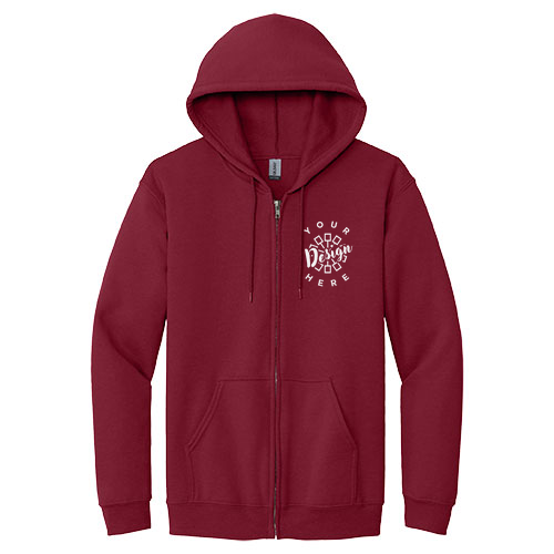 The Gildan Full Zip Hooded Sweatshirt is a popular choice for a basic zip hoodie. It features a lightweight fleece made from a 50/50 cotton/poly blend.