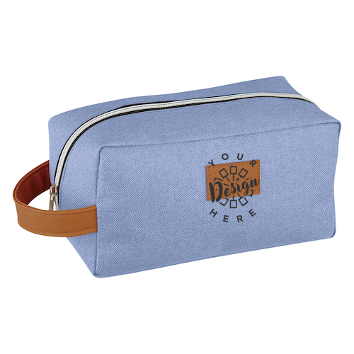The **Heathered Toiletry Bag** is a stylish and practical accessory, perfect for travel or everyday use. Made from durable 600D polyester, this bag is designed to withstand the rigors of daily life while maintaining a sophisticated, heathered look. It features a spacious zippered main compartment to organize your toiletries, and a convenient leatherette handle for easy carrying. The trendy silver accent zipper adds a modern touch, while the front leatherette patch offers the ideal space for custom branding or personalization. Easy to maintain, simply spot clean and air dry to keep it looking fresh. Whether for corporate gifts, personal use, or as part of your promotional campaign, this customizable toiletry bag combines fashion with functionality.
