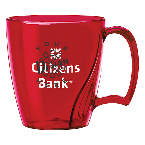 This product is a break-resistant, durable, acrylic item with lightweight construction that is microwave safe and BPA free. It is made in the USA and meets FDA requirements. Available colors include black, white, sapphire blue, or ruby red, with an approximate size of 4 ¼" H. Standard production time is 5-7 days after proof approval, and the product is protected by U.S. Patent No. D442,829.