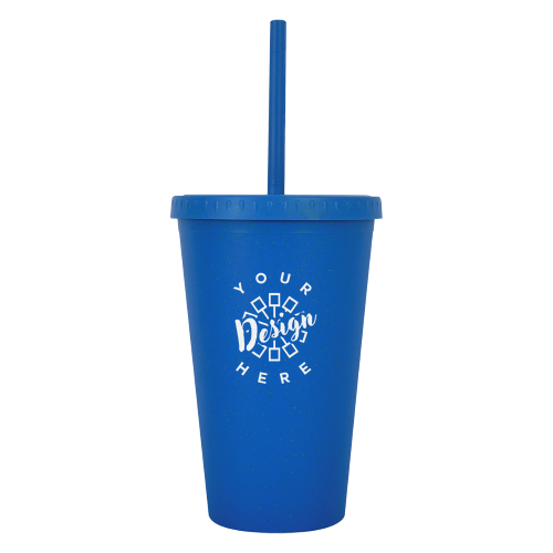 This reusable tumbler offers a sustainable alternative to disposable plastic cups and bottles. It features double-wall construction for insulation of hot or cold liquids, ensuring your beverages stay at the desired temperature. The screw-on, spill-resistant lid comes with a matching 9" buildable straw for added convenience. Additionally, small amounts of plant-based material are used to create a flecked finish, making each tumbler unique. It meets FDA requirements, is BPA free, and hand wash is recommended for cleaning.