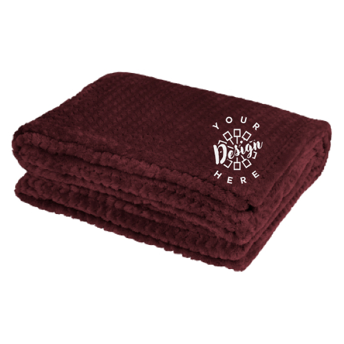 This is a large 55" x 60" blanket made of 100% polyester with a super soft feel and is surface washable. Available colors include Black, Cream, Gray, or Navy. The blanket can be imprinted with a 5" diameter area and offers embroidery options up to 7 thread colors and 5,000 stitches. Optional features include a storage bag and various patches.