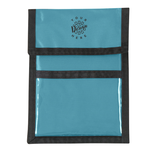 This item is made of rPET, which is recycled polyester created from melting down existing plastic bottles, though the trim, cord, cord lock, and window are not rPET. It features a 4" x 3" clear plastic badge window, an outside business card pocket, two pen holders, an inside zippered compartment, and a breakaway neck cord. The approximate size is 5" W x 6 ?" H, with a standard imprint area on the front flap of 3" W x 1" H. Available colors include Black, Burgundy, Forest Green, Kelly Green, Lime Green, Navy, Orange, Purple, Red, Royal Blue, Turquoise, or Yellow, all with Black Cord and Trim.