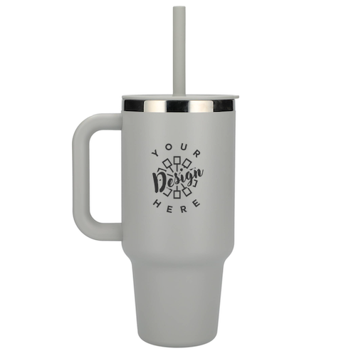 The Hydro Flask All Around Travel Tumbler 40oz with Straw is built for maximum hydration on the go, featuring TempShield® double-wall vacuum insulation to keep drinks cold for hours. Its snug, splash-resistant Press-In Straw Lid and flexible straw offer mess-free sipping, while the strong ergonomic handle ensures easy carrying. Crafted from 18/8 pro-grade stainless steel for pure taste and long-lasting durability, it also boasts a vibrant Color Last™ powder coat that's sweat-free and BPA-free. Designed to fit most cup holders, it's perfect for custom logos or everyday use.