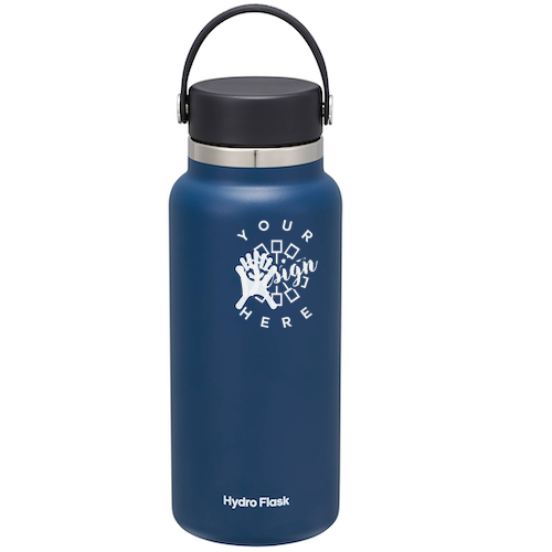 The Hydro Flask Wide Mouth 32 oz Bottle with Flex Cap is the ultimate hydration companion for work, travel, or adventure. Featuring TempShield® double-wall vacuum insulation, it keeps drinks cold for up to 24 hours or hot for up to 12. The leakproof Flex Cap and Honeycomb™ Insulated Cap deliver superior temperature retention, while the wide mouth opening makes it easy to add ice cubes. Crafted from 18/8 pro-grade stainless steel for durability and pure taste, this BPA-free bottle is finished with a vibrant, sweat-free Color Last™ powder coat. Add your custom logo for bold, branded impact.