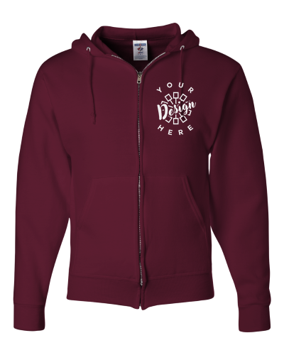 This Jerzees Full Zip Hooded Sweatshirt is one of our most popular zip-up hoodies. It is incredibly soft, being a 50/50 cotton/poly blend, and our custom printing is of the highest quality, ensuring you get a fantastic garment. With plenty of colors to choose from, you're sure to find one you like! Simply add your own custom design!