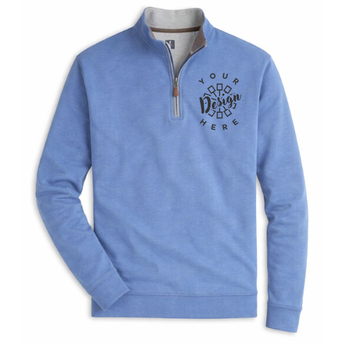 The johnnie-O Men's Sully Quarter-Zip is a premier choice for custom corporate apparel, blending the comfort of a favorite sweatshirt with the refined look of a high-end sweater. Crafted from a soft heathered cotton-blend fabric, this versatile pullover features signature details like a leather zipper pull and a contrast inside collar that looks sharp over any polo or button-down. Elevate your brand’s professional image by adding your custom embroidered logo to this best-selling piece, designed to transition seamlessly from the office to the golf course.