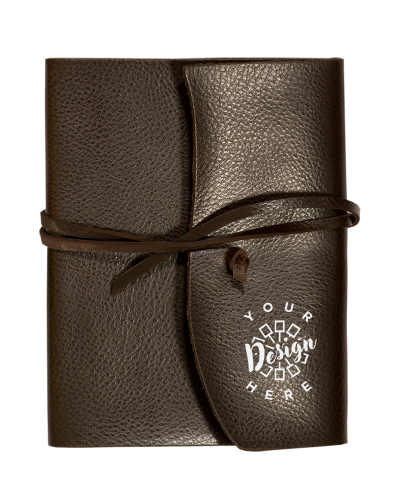 The Leeman Americana Leather-Wrapped Journal (5.25" x 6.75") combines style and function with its bonded leather wrap, elastic closure, and replaceable notebook. This compact journal is ideal for on-the-go note-taking, making it a perfect corporate gift or promotional item. The premium leather cover allows for custom debossing or screen printing for personalized branding, adding a touch of sophistication to any business or personal occasion.