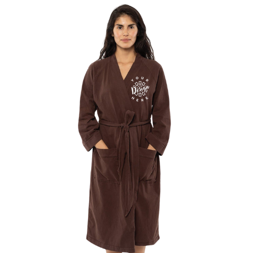 Crafted for comfort and everyday versatility, the Heavy Jersey House Robe (1247GD) from Los Angeles Apparel is your go-to layering piece for lounging at home, stepping out after a bath, or covering up poolside in effortless style. Made from 100% heavy jersey cotton, this robe feels soft yet substantial, featuring 3/4 raglan sleeves, two front pockets for convenient storage, and an attached back waistband so you never misplace your tie — wear it open or tied for a casually chic look. Garment dyed and shrink-free, this robe delivers long-lasting comfort with a relaxed fit that transitions from indoor comfort to casual errands with ease. Proudly made in Los Angeles, it’s available in a range of colors and sizes, making it perfect for everyday wear, custom decorating, or branded apparel collections