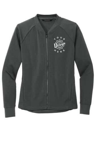 The Mercer+Mettle Women’s Double-Knit Bomber in Anchor Grey blends a sport-inspired silhouette with casual refinement—perfect for layering day or night. Crafted of an 8.3-ounce, 100% double-knit polyester fabric, this bomber offers durable comfort and a smooth surface built for customization. Key design features include a rib-knit collar, cuffs and hem, an exposed matte-black zipper pull for sleek styling, and convenient front pockets for utility. With its streamlined shape and clean aesthetics, this jacket is an excellent canvas for embroidery or screen-printing and is especially well-suited for corporate teams, branded apparel programs, and uniform outerwear where both style and functionality matter.
