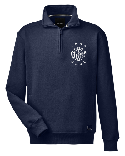 Crafted from 8.3 oz./yd² of 60% cotton and 40% polyester mercerized fleece, this garment ensures warmth and comfort. It features a stand collar and striped neck tape for added style. The Nautica branded quarter-zip closure adds a touch of sophistication, while welt pockets provide convenient storage. Ribbed cuffs and bottom hem offer a snug fit, and the Nautica J-Class logo at the left hem adds a branded finish. Additionally, it includes a tagless label for enhanced comfort.