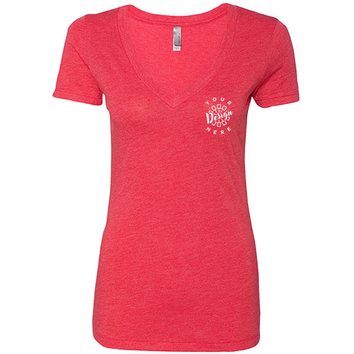 This ladies' v-neck shirt weighs 4.3 oz and is crafted from a blend of preshrunk 50% polyester, 25% cotton, and 25% rayon jersey. It boasts 32 singles for extreme softness, a 1x1 baby rib-knit set-in collar, and a satin label.