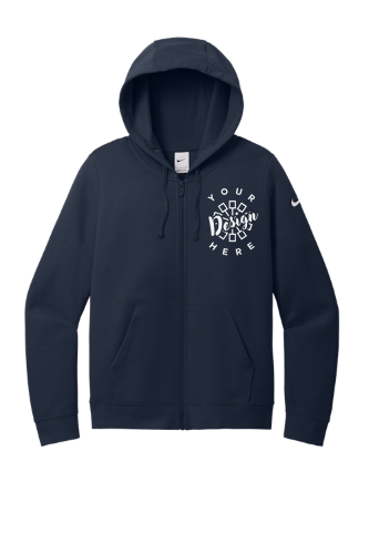 The Nike Ladies Club Fleece Sleeve Swoosh Full-Zip Hoodie combines comfort and style, made from a soft 8.3-ounce blend of 80/20 cotton and polyester. Designed with a three-panel hood, dyed-to-match drawcords and zipper, and front pockets for everyday convenience. Rib knit cuffs and hem provide a snug fit, while the contrast embroidered Swoosh logo on the left sleeve adds a signature Nike touch. Ideal for custom embroidery or screen printing, this hoodie is perfect for teamwear, corporate apparel, or branded merchandise.