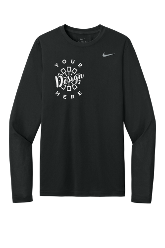 The Nike Team rLegend Long Sleeve Tee is built for performance and sustainability, made from 100% polyester jersey with at least 75% recycled content. Lightweight at 4 ounces, it features neck tape for added durability and a heat-transfer label for tag-free comfort. A contrast heat transfer Swoosh logo on the left chest adds signature Nike style, making it a great choice for training, teams, or everyday wear. Ideal for custom branding and active lifestyles.