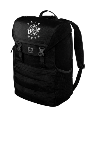 This backpack features a durable construction with a 600D poly top, zippered pockets, and daisy chain detail. It has a large main compartment with interior organization, side zippered pocket, and side mesh pocket. The backpack is equipped with fully adjustable shoulder straps and a small zippered pocket on the left shoulder strap for quick access to small items. It also includes an integrated luggage trolley pass-through on the back for added convenience.