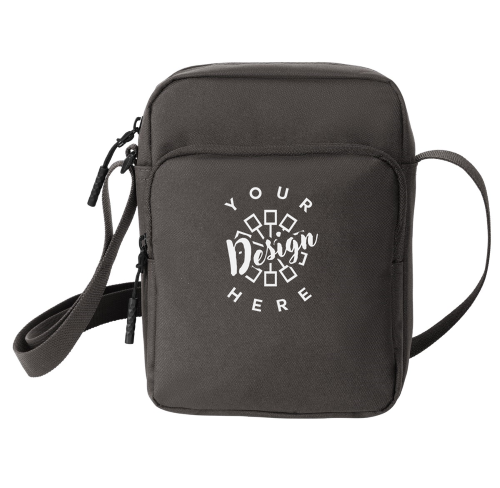 Constructed from durable 300D polyester canvas, this bag features a zippered main compartment for secure storage of your essentials. Additionally, it includes a front zippered compartment and a back slip pocket for added organization. The adjustable webbing strap ensures comfortable carrying, while the black molded zipper pulls add a sleek touch.