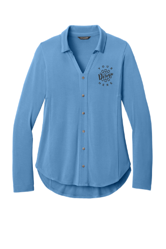 The Port Authority Women’s Luxe Knit Button Tunic is a stylish and versatile option for custom embroidered apparel. Made from a soft 6.6-ounce rayon and spandex jersey blend, it offers a smooth feel with comfortable stretch. Featuring an open self-fabric collar with a stand, a decorative 6-button placket with faux horn buttons, and long dolman sleeves, this tunic blends modern design with everyday wearability. Front and back seam details, a drop tail hem, and self-turned cuffs and hem complete the flattering tunic-length silhouette, perfect for corporate or casual settings.