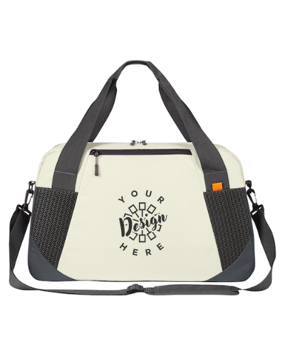 The Prime Line b.active Eco Friendly Duffel Bag is the perfect blend of modern design and everyday functionality, featuring a sleek, streamlined silhouette ideal for travel or gym use. Its spacious zippered main compartment includes an inner zippered pocket and two open slash pockets for organized storage, while front and back zippered pockets add extra convenience—the back pocket even doubles as a luggage pass through. With a removable, adjustable shoulder strap and two sturdy carry handles, this eco-conscious duffel offers comfort and versatility, making it an excellent choice for custom branding and promotional use.