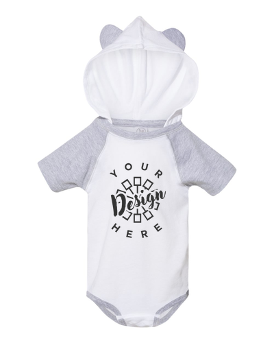 Rabbit Skins - Fine Jersey Infant Short Sleeve Raglan Bodysuit with Hood & Ears