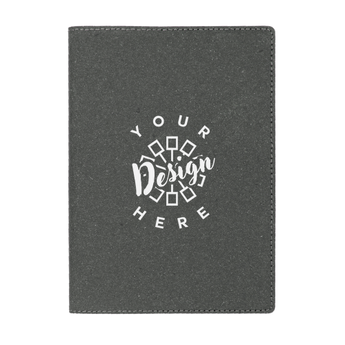 The Rochester Recycled Leather Journal is an eco-conscious choice, crafted with a recycled leather cover available in charcoal and light gray. It includes 80 lined pages, a matching pen loop, and a front slot for business cards, making it both stylish and practical. Compact at 5" x 7", it's designed for portability and frequent use. Customizable with silk-screen or pad-print options, this journal is ideal for personalized branding and corporate gifting.
