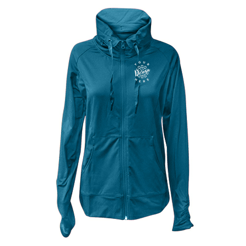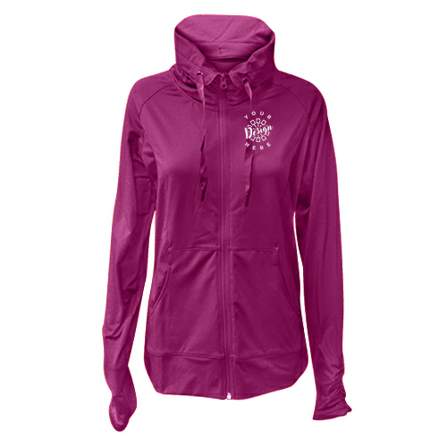 Experience comfort and performance with this stretchy, wicking performance jacket featuring a soft-brushed backing and a unique cowl collar.