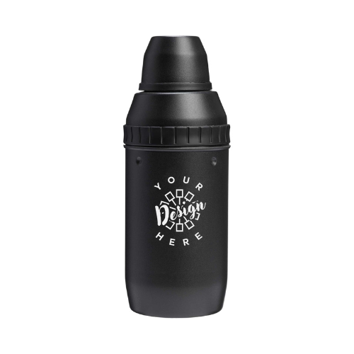 - 6-Piece Set Includes: One 20 oz shaker, strainer lid, jigger cap, citrus reamer and two double-wall steel rocks glasses