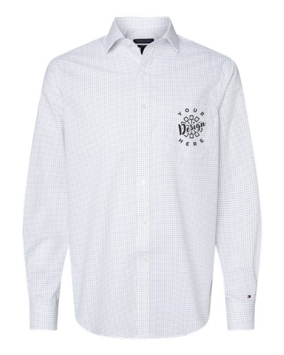 Elevate your wardrobe with the Tommy Hilfiger Polka Dot Shirt, crafted from 100% cotton for a comfortable and breathable wear. This shirt features a classic fit and a button-up collar for a timeless look. The iconic Hilfiger ribbon accents the inner collar, adding a touch of sophistication. Complete with a left chest pocket and the Hilfiger logo above the left cuff, this shirt blends style and quality effortlessly.